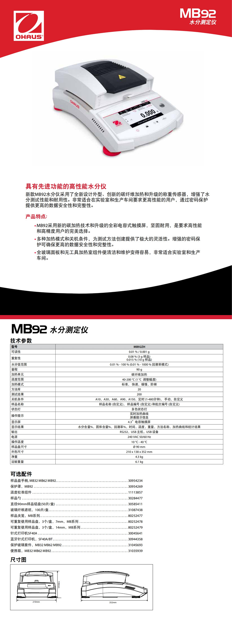 MB92ZH碳纤维加热电子水分测定仪